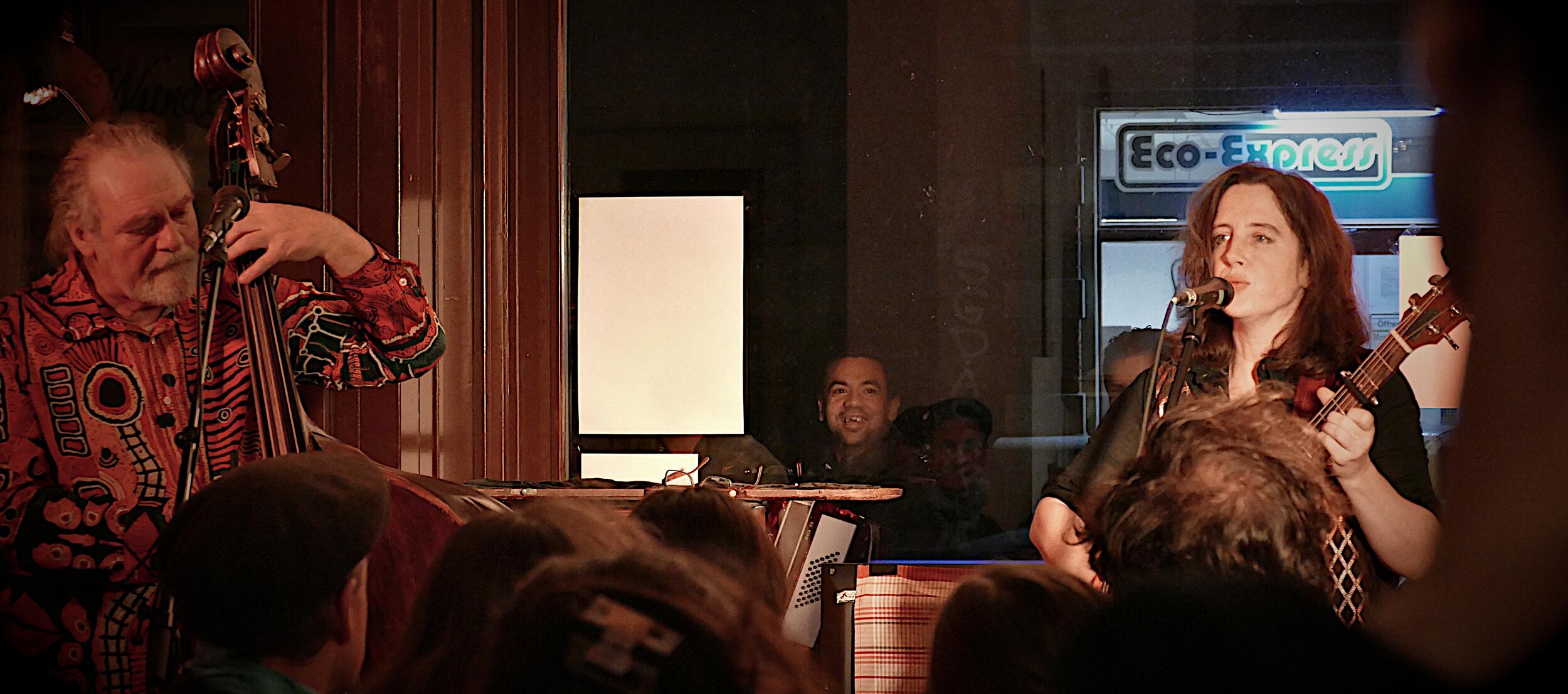 Zwei, die sich einig sind: Anna Maria Zinke, eine profilierte Liedermacherin mit einigen CDs im Gepäck und zwei, drei Ohrwürmern. Akki Schulz, klassisch ausgebildeter Kontrabassist auf Solopfaden. Annas Lieder aus filigraner Dichtung und melodischer Eingebung, Akkis Fundament, manchmal mit seiner wärmenden Stimme. Sie sind Individuen, sind nicht eins. Aber sie sind sich einig: Ein Lied das ehrlich sein und ergreifen soll, muss das eigene Herz berührt haben. Aus diesem Grunde finden sich, außer ihren eigenen Schöpfungen, einige Federn aus den Fächern der alten Meister Gundermann und Rio Reiser im Repertoire. Man halte nur ein wenig still und sei doch in sich selbst vergnügt – d´accord?