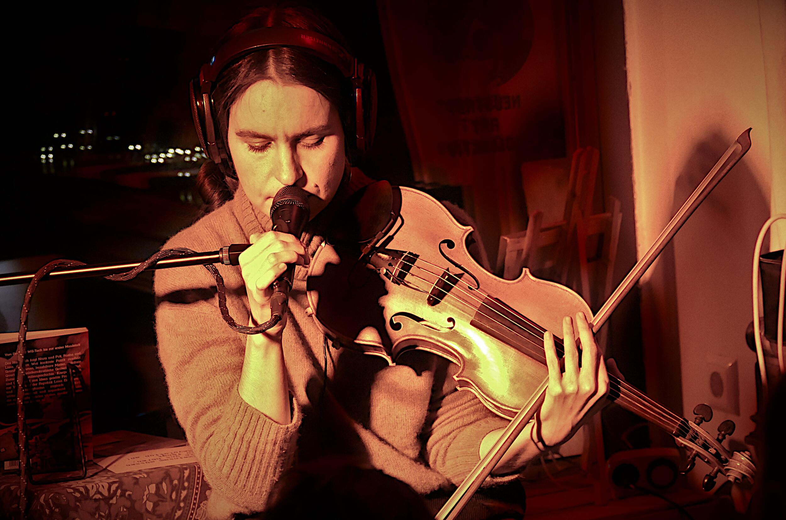 Das Soloprojekt der Danziger Geigerin Izabela Kałduńska vermischt in ihrem Kopf und Herzen klassische Violine, Jazzgeige und experimentelle Musik, freie Improvisation und zeitgenössische Klassik zur Erforschung des Klangs einer einzelnen Geige. Eine Emanzipation des kleinen, quietschenden Instruments durch den Einsatz von Effekten, Loops, Geräuschen, Gesang und gesprochenen Worten.